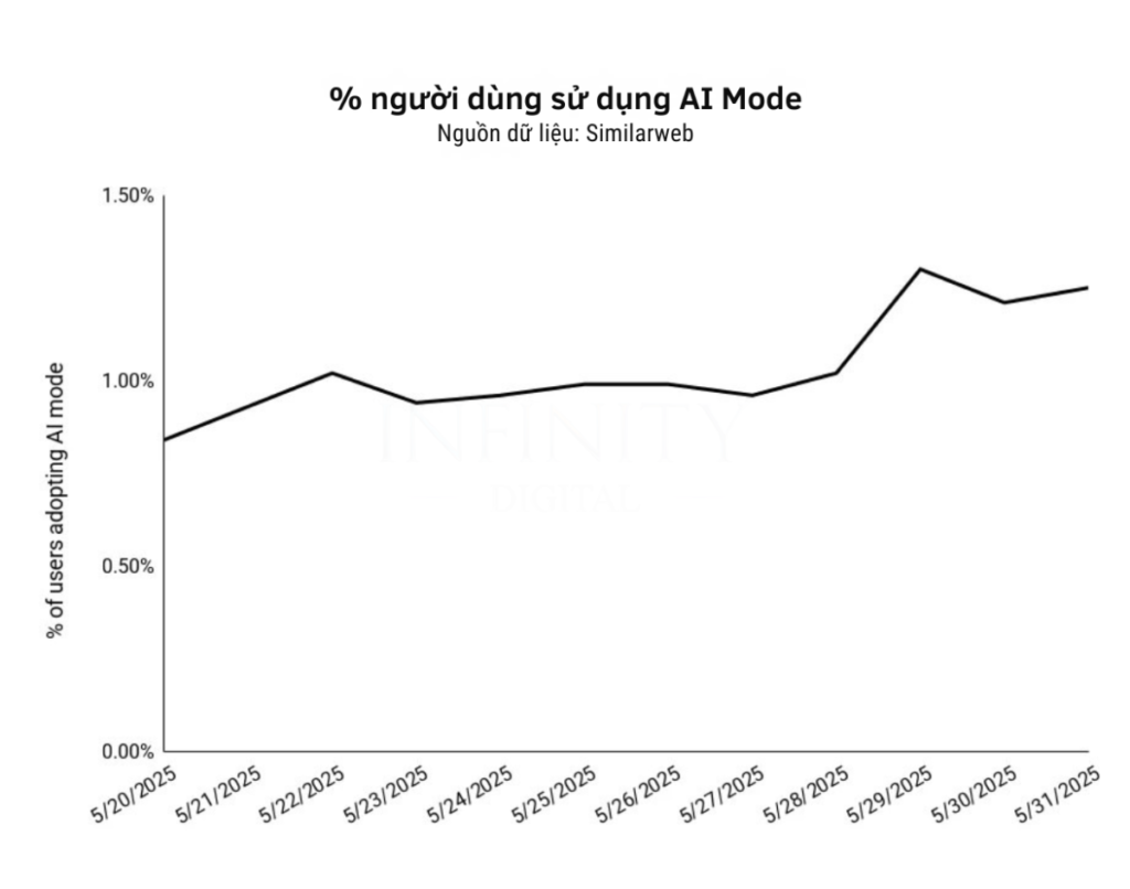 Similarweb chỉ hiển thị AI Mode trong chưa đầy 1% truy vấn – theo thiết kế.